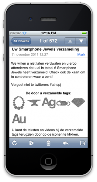 Smartphone Jewels is een virtuele tentoonstelling in de stad Arnhem. Door het scannen van tags verkrijgt de toeschouwer wetenswaardigheden over de wereld achter het sieraad, variërend van politiek commentaar tot verhalende anekdotes.